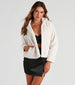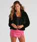 Can't you picture yourself in this faux fur crop jacket? Elevate your outfit layering on this fab coat featuring long sleeves. a standing collar neckline with dual snap-button closures. a hidden front zipper. side pockets. and an illusion stripe design. Complete the look in lace-up heels.