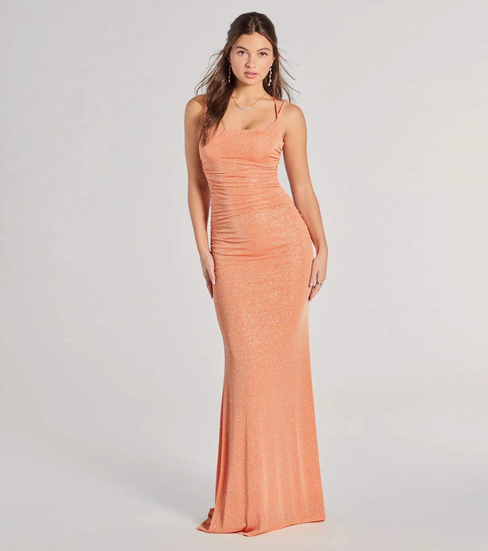PLACEHOLDER - Rylie Formal Glitter Lace-Up Bodycon Long Dress