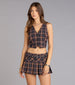Prep. but make it playful. This plaid cropped vest top features a V-neckline and button-down front. Perfect for pairing with the matching mini skort.