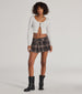 A fab plaid pleated micro mini skort that'll give your outfit a preppy look. Pair with a cardigan and boots.