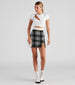 Got a seasonal crush on plaid? This mini skirt is perfect for adding to the collection! It features a high-rise waist. bodycon silhouette. and front slit accent on stretchy knit fabric. Complete the look in a cutout crop top and boots.