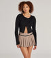 Channel a preppy vibe with a pleated skort that brings the flair! The skort features a belted drop waist and a mink skirt overlay with hidden shorts. Complete outfit with a cropped cardigan and boots!Â