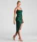 No need to apologize for stealing the spotlight in this satin midi dress perfect for your next dressy night out! Designed with a lined satin fabric. this dress features a sleeveless square neckline. spaghetti straps. a side pleated seam leading to the asymmetric side cutout slit hem. and a bodycon silhouette to flaunt your gorgeous figure. Complete the look in lucite heels.