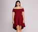 Off theshoulder dresses are all the rage this season! This skater dress is perfect for looking your best at that next celebration. Show off your amazing fashion sense with this dress that features an elastic off the shoulder neckline. short sleeves. a form-fitting bodice that flatters curves and a super cute skater skirt with a high-low hem. Fabric offers a comfortable fit with plenty of stretch. Complete your look with statement duster earrings and sling back heels to bring the wow factor to your outfit.
