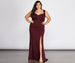 Make an unforgettable entrance in our wowing Kyla dress! She features a rich burgundy hue. a sleeveless bodice. a V neckline. wide overlapping pleated accents that drape the bodice and supportive shoulder straps. Her relaxed fit bodice leads to a curve hugging floor length silhouette accented with vertical seams and a high side slit. Dress is composed of a lined scuba fabric that offers a moderate stretch. Includes an exposed back gold zipper closure with ruched detailing.