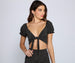 Keep it cute with the perfect crop top that brings those stylish vibes! The top features a plunging V-neckline. short sleeves. a tie-front hem. and a polka dot pattern. The skirt is composed of a smooth knit fabric that offers a form hugging fit with a moderate stretch. Complete look with the matching crop top.
