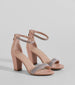 These block heels bring the perfect pop of sparkle to your dressy fit! They feature an almond-shaped toe. rhinestone-embellished toe and ankle straps. a block heel. and a closed back with a zipper closure. The heels are composed of a faux leather material with a cushioned insole. Complete the look in a stunning necklace set.