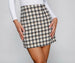 Keep it preppy and cute with a skirt that is perf for grabbing your PSL in! The skirt features a plaid print. a high-rise waist. a mini-length silhouette. and a back zipper closure. The skirt is composed of a wool-like knit fabric that offers a form-hugging fit with minimal stretch. Complete look with matching the shacket.