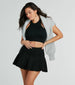 Enter your preppy girl era with this adorable ponte skater skort. perf for running errands and getting coffee with your friends! The skort's structured ponte knit fabric offers a moderate stretch for comfortable wear and features a sheer knit fabric for the shorts lining. The high waist creates a flattering fit. while the mini-length overlay has a skater silhouette for a flirty flair. The panel seam design gives off a chic pleated look. Style with a crop top and sneakers!