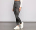 We love a preppy and posh look! Slay your everyday 'fit in these plaid skinny pants. They feature a high rise elastic banded waist. tapered skinny pant legs. and a black and white plaid print. Complete your look with a basic bodysuit and strappy heels to get that chic. elevated vibe.