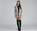 You'll look pretty and posh this winter season with your new fave faux wool coat! It features a lapel collar. long sleeves. faux front pockets. and a chic plaid pattern. Layer this coat over a basic bodysuit with a faux leather mini skirt.