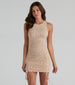 Look and feel pretty as a rose in this ditsy floral mini dress featuring a sleeveless crew neck. a bodycon silhouette. and adjustable ties at the hem that let you customize the length. Complete your look in a dainty bracelet for a backyard bbq.