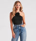 Create a pretty spring look with this sleeveless bodysuit featuring a halter neckline with tie-back closure. a statement rose on the front. a partially open back. and a form-hugging fit. Style with a sleek mini skirt for a lunch with the girls!Â