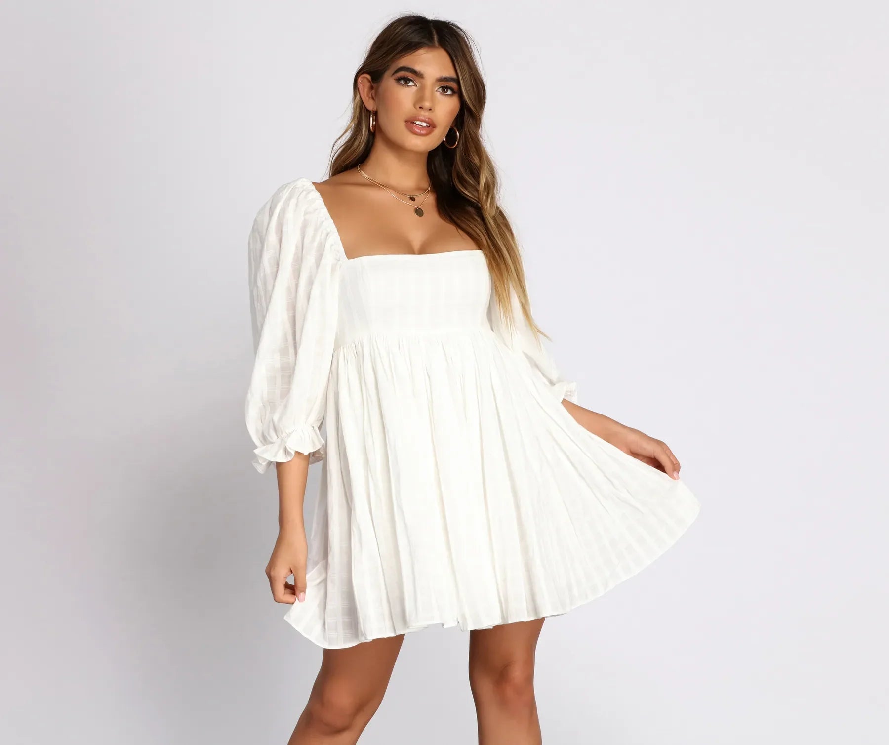 Keep it pretty in plaid with this brunch ready mini dress! This season-ready dress only needs a pair of wedges and a pop of jewel tones for a complete look!