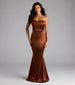 Make it an elegant entrance in the Priscilla formal satin dress with a curve-hugging mermaid silhouette and floor-sweeping hem for dramatic flair.