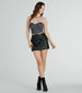 Showcase your edgy behavior in this sleek faux leather cargo skort! It features a flattering high-rise waist. trendy cargo flap pockets. and a form-hugging fit. Complete the look in a strapless corset top for a concert or bar crawl!