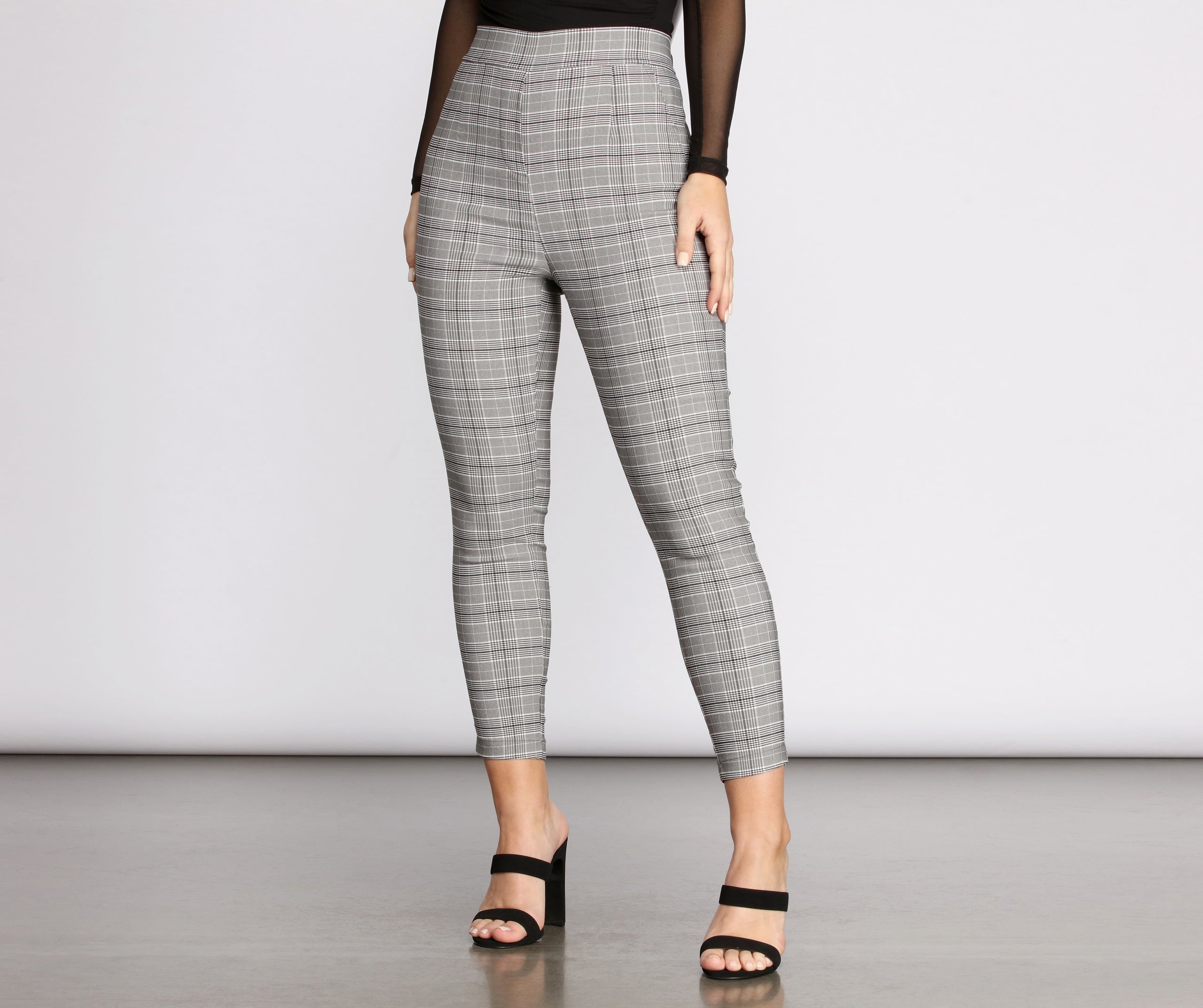 Pull Up In Plaid Mid Rise Skinny Trousers