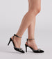 These radiant rhinestone bow stiletto heels will elevate your stylish look all the more! They feature a closed pointed toe. a sparkly rhinestone trim with a chic rhinestone bow accent. thin rhinestone ankle and heel straps. and a sleek stiletto heel. Pair these fancy heels with a necklace and earrings set.