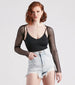 Radiate glam vibes in this trendy embellished bolero! It features long fitted sleeves. an open front. a fitted. ultra-cropped hem. and all-over sparkly rhinestones on the sheer open mesh fabric. Style over a fit and flare skater dress with platform heels for your next fancy party.