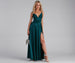 Strut it out in a formal dress that captivates from the moment you enter the room. Rae features a sleeveless V-neckline with flirty pleated cups. a corset bodice with flexible boning to enhance your natural curves. Her floor-sweeping A-line silhouette offers a sultry high side slit for a show of leg. The dress is composed of a satin fabric that offers minimal stretch. Complete look with clear heels and a rhinestone choker.