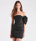 For making an entrance and an even grander exit. the Raeya party mini dress is a chic pick for cocktail parties or dressy birthdays! She features a strapless neckline with non-slip grip lining. a statement bow that creates a short sleeve cuff. a form-hugging fit. and a mini-length hem. The formal party dress is composed of a sleek taffeta woven fabric with a sewn-in knit lining and minimal stretch. Complete the look with colored gemstone earrings and heels.