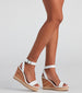These adorable cork espadrille wedges will have you ready for weekend brunch! They feature an open almond toe with a toe strap. an adjustable ankle strap with a back criss-cross design. a sturdy cork wedge heel. and a braided espadrille trim. Complete your look with a chic handbag.