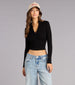 Built for the days you're juggling errands. plans. and a vibe check. this rib knit crop top keeps everything looking sleek with zero effort. The mock neck and 3/4 zip bring that sporty edge. while the fitted silhouette makes it the kind of top you'll style on repeat.