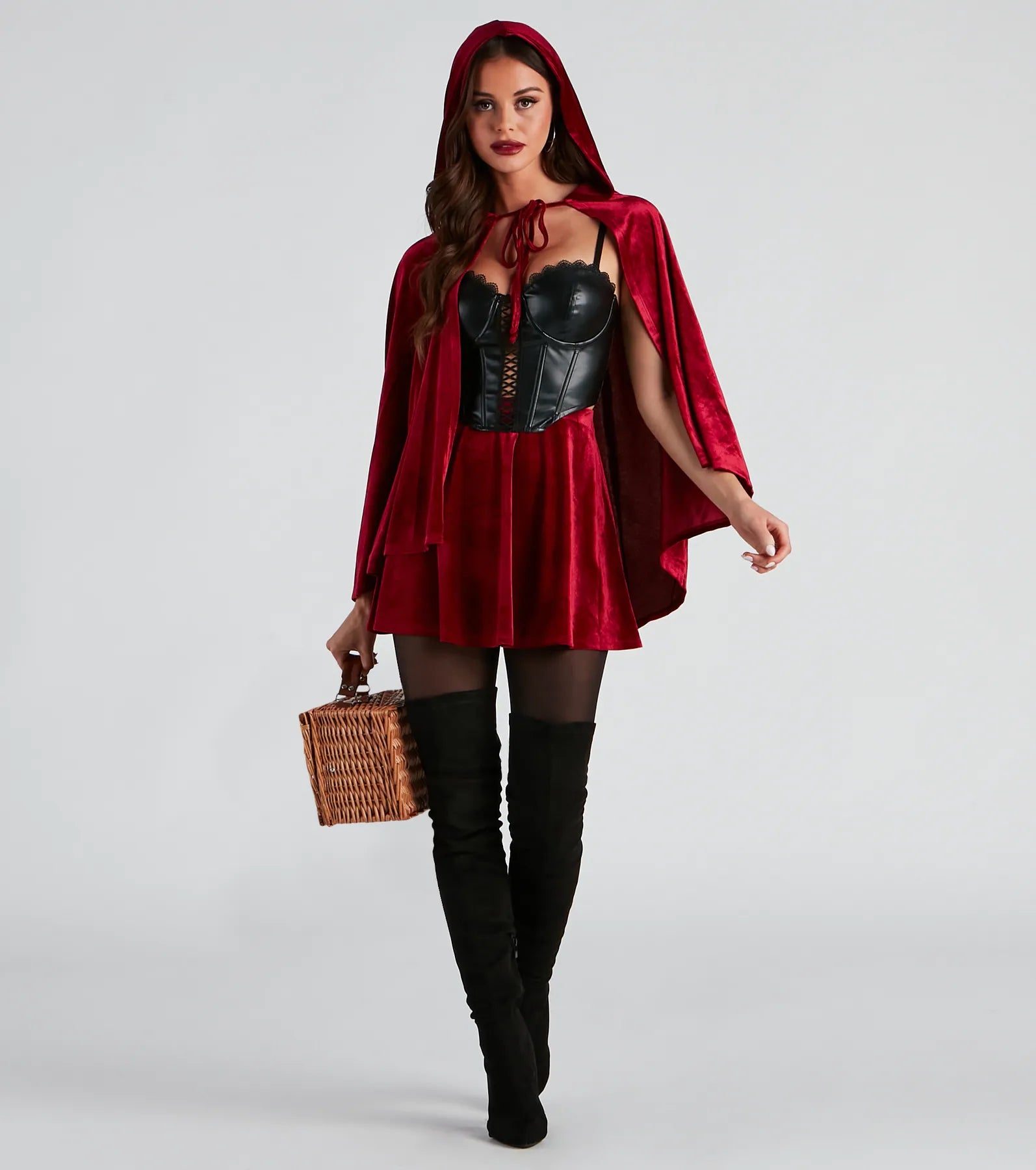 This trendy velvet skater skirt will have you ready to twirl at every party! The skirt will give your look the perfect blend of sultry and flirty featuring a high-rise waist. skater silhouette. and a short-length hem. The velvet fabric offers a moderate stretch. Complete your outfit with a corset bodysuit. sheer tights. and thigh-high boots!