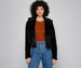 Bring the edge this season in this faux fur jacket. It features a collared neckline. long sleeves. an asymmetrical front zipper. side pockets. and a cropped hem. This jacket is composed of lined faux fur fabric and has a form-hugging fit. Complete the look with a bodysuit.