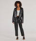 A pair of faux leather pants to give your outfit a sassy allure! They feature a comfortable drawstring high-rise waist. convenient side pockets for your hands. and a flattering capri-length hem. Pair with a cropped jacket.