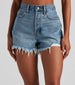 Fall for the Reese high-rise denim shorts by Windsor Denim! She features a super high-rise waist. distressed accents. and a frayed cut-off hem on vintage medium wash denim with a color fade effect. Complete the look in a crop top and sandals.