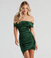 Showcase your regalness to all your constituents in this satin short dress featuring an off-the-shoulder. foldover neckline. a pleated side seam to accentuate your curves on the bodycon silhouette. and an asymmetrical hem. Complete the look with a collar-style necklace.