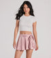 Releve in this cute satin skater skirt for a ballet-inspired look! With a high-rise waist and a flirty faux wrap skirt overlay with a side tie. this skater silhouette accentuates your curves along the mini-length hem. Complete the look in a bodysuit and ballet flats for a chic style.