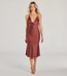 Turn every head in the room with the help of this sleeveless midi dress at the cocktail party! Feel confident and sultry in the plunge cowl halter neckline. open back. and elegant A-line silhouette leading to the midi-length hem for a chic touch. Complete the look with earrings and heels.