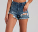 Showcase your curves in the Remy high-rise denim shorts by Windsor Denim! With summer on the way. keep cool and on-trend in these jeans shorts featuring a flattering high-rise waist. front and back distressed accents. and a frayed cut-off hem on dark wash denim fabric with a vintage color fading. Complete the look in a crop top and sandals.