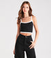 Give your look a fresh retro-street vibe with this tank top perfect for casual hangs! It features a sleeveless scoop neckline. thin shoulder straps. a fitted crop hem. and contrast trim all-over on stretchy cotton-blend knit fabric. Complete the look in on-trend cargo pants.