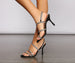 Dazzle on your next night out in heels that bring the glamour! The heels feature a slingback strap. rhinestone embellished asymmetrical straps. a square toe. and a sleek stiletto heel. Complete look with a ribbed knit midi dress.