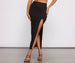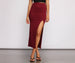 Take it up a notch with a skirt that can be dressed up or dressed down to take you from day to night. Style with a basic bodysuit and mules for a casually cute outfit. The skirt features a high rise waist. a high side slit. and a maxi length silhouette.