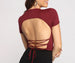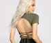 This open lace-up back crop top is a trendy upgrade from your basic top. It features a sultry open back with a lower lace-up detail and a form-hugging ribbed knit fabric. Wear with some mom jeans and your fave pair of heeled booties for a casual girl's night out.