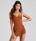 Step out in this crepe skort romper and watch the heads turn! It features a sleeveless. v-neck. spaghetti straps. a high waist seam. and an envelope front design with shorts underneath. Complete the look in bold earrings for a daytime outing.