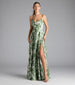 Beautifully constructed from satin fabric with a floral print. the Robina A-line formal dress radiates spring vibes like no other! Boasting a charming lace-up back and high front slit for effortless movement along the graceful floor-length hem.