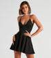 Looking for a little romance in your life? This crepe skater dress is sure to bring love to your closet! It features a sleeveless V-neck. spaghetti straps. a lace racerback design with zipper closure. and a lower cutout atop the short-length hem. Complete the look with earrings and heels.