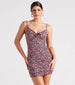 Romance yourself! Look sweet in this rose print casual dress on a day date or brunch. It features a sleeveless sweetheart neck. spaghetti straps. bust tie-front. and keyhole. side ruched seams to accentuate your figure along the mini. bodycon silhouette. Style with a denim jacket to complete the look!