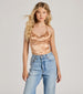 Indulge in the ultimate romantic effect in this halter tie-back floral satin top! Featuring a flattering V-neckline and delicate halter spaghetti straps. this top turns heads with its open tie-back closure. The fitted pointed hem and beautiful floral design on luxurious satin fabric make it a must-have for your wardrobe. Complete the look in high-rise jeans and mules.
