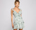 Get an effortlessly romantic look for a daytime date with this floral chiffon skater dress. It features ruffle detail shoulder straps. a wrap-front V neckline. a backless design with a thin tie-back accent. a high waist with a tie-front. and a flowy skater silhouette with tiered ruffle detailing. Complete the outfit with hoop earrings and a new purse.