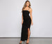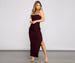 Get a gorgeous look for a romantic date night in this sultry ruched maxi dress. It features spaghetti straps. a square neckline. ruched side detailing. and a maxi length with a high side slit. The knit fabric offers plenty of stretch and provides a curve-hugging fit. Style this dress with a new pair of earrings and strappy heels.