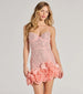 Always charm and bring the party in the Rosalie mini dress to prom or birthdays! Made from a mesh fabric. this dress is embellished with glam details like rhinestones and faux pearls to make you standout. The sweetheart neckline and adjustable spaghetti straps enhance your natural curves. while the built-in padded underwire bust offers support and a flattering silhouette. The bodycon fit and asymmetrical ruffled mini-length hem add a touch of sophistication to this luxurious dress. Complete the look with a clutch and heels.