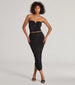A high-rise bodycon midi skirt ready for dinner and cocktails with the girls! It features a smooth ruched silhouette with an adjustable drawstring that lets you customize the style. Pair with stiletto heels.