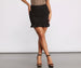 Keep it ruched in a ruffled mini skirt. This must-have skirt features an elastic high rise waist. ruched side seams. and a mini skirt silhouette with a ruffled hem. The skirt is composed of a stretchy knit fabric that offers a form hugging fit with a moderate stretch. Complete your outfit with a fab animal print top and dainty accessories.