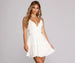 Keep it cool in this breezy-beautiful skater dress! It features adjustable spaghetti straps. a seamed V neck bodice. tiers of ruffle trim at the bust. waist. thigh and hem. and an A-line skirt with back zip. Dress is fully lined and made from a lightweight Tencel-blend with natural crinkle-effect and little to no stretch.